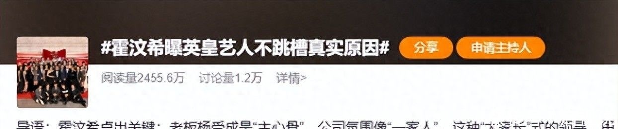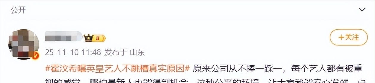 2025年11月10日,#霍汶希曝英皇艺人不跳槽真实原因#毫无预兆地冲上微博热搜榜首!